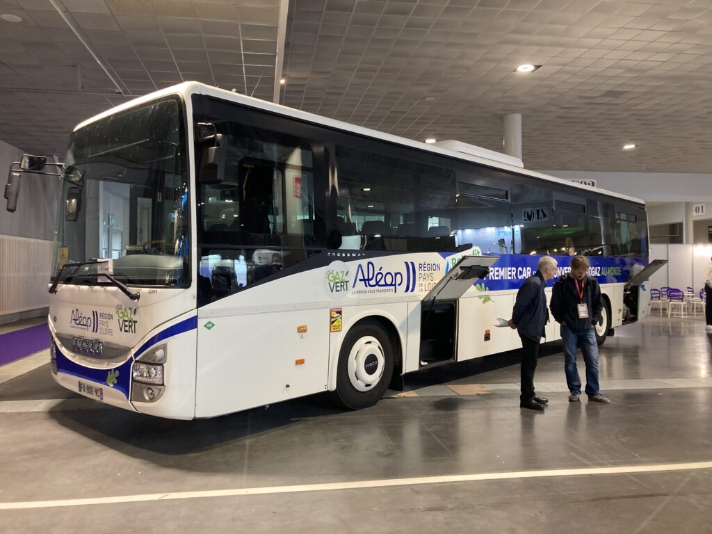 L’univers du rétrofit était bien représenté, puisque le CRMT était venu avec un autocar Iveco Crossway modifié pour fonctionner au biogaz et aux couleurs du réseau Aléop de la région Pays de la Loire.