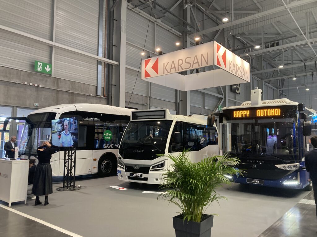 HCI exposait une palette de trois véhicules de la marque Karsan, un minibus e-JEST, un midibus e-ATAK équipé d’un système de conduite autonome, et un autobus électrique e-ATA de 12 mètres.