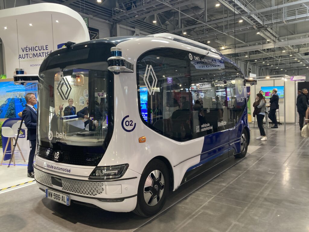 Pour rester dans le domaine des navettes, un véhicule We Ride était exposé par Beti et la Macif. Un deuxième exemplaire était par ailleurs en démonstration à l’extérieur du salon, en partenariat avec SNCF Voyageurs et Keolis durant toute la durée des RNTP.